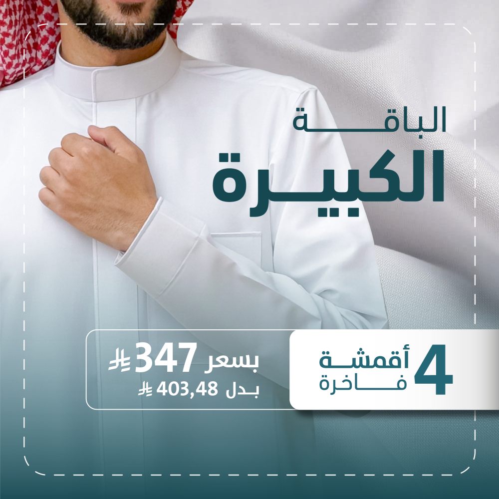 بمناسبة ذكرى يوم التأسيس قام متجر المنسوجات المختارة بتوفير باقة قماش رجالى 4 قطع وهو الذي يتوفر على عددًا من المنتجات التي يتهافت عليها المواطنين خلال الفترة الماضية بفضل المميزات التي يأتي بها كل نوع من الأنواع التي جمعناها لكم في باقة واحدة.