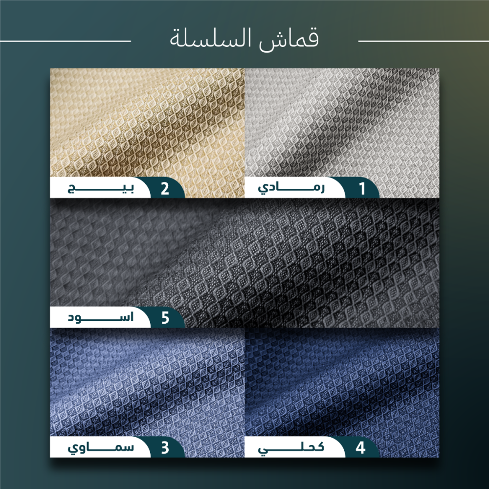 - يتميز قماش نقشة السلسلة JT-101S بتصميم كلاسيكي أنيق يمنحك طابعًا راقيًا وفريدًا، مثالي لمن يبحث عن الإطلالة التقليدية الممزوجة بالأناقة العصرية.